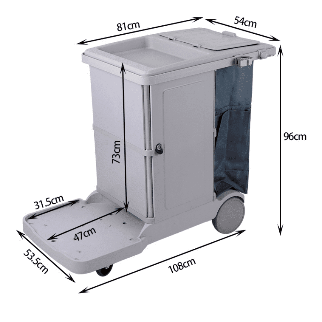 Das abschließbare Materialfach schützt Reinigungschemie und Verbrauchsmaterial vor unbefugtem Zugriff. Durch stabile Rollen, kompaktes Design und großzügige Ablagemöglichkeiten wird der Wagen zum perfekten Begleiter für Reinigungsdienstleister, Facility Management, Hotels, Kliniken und öffentliche Einrichtungen.