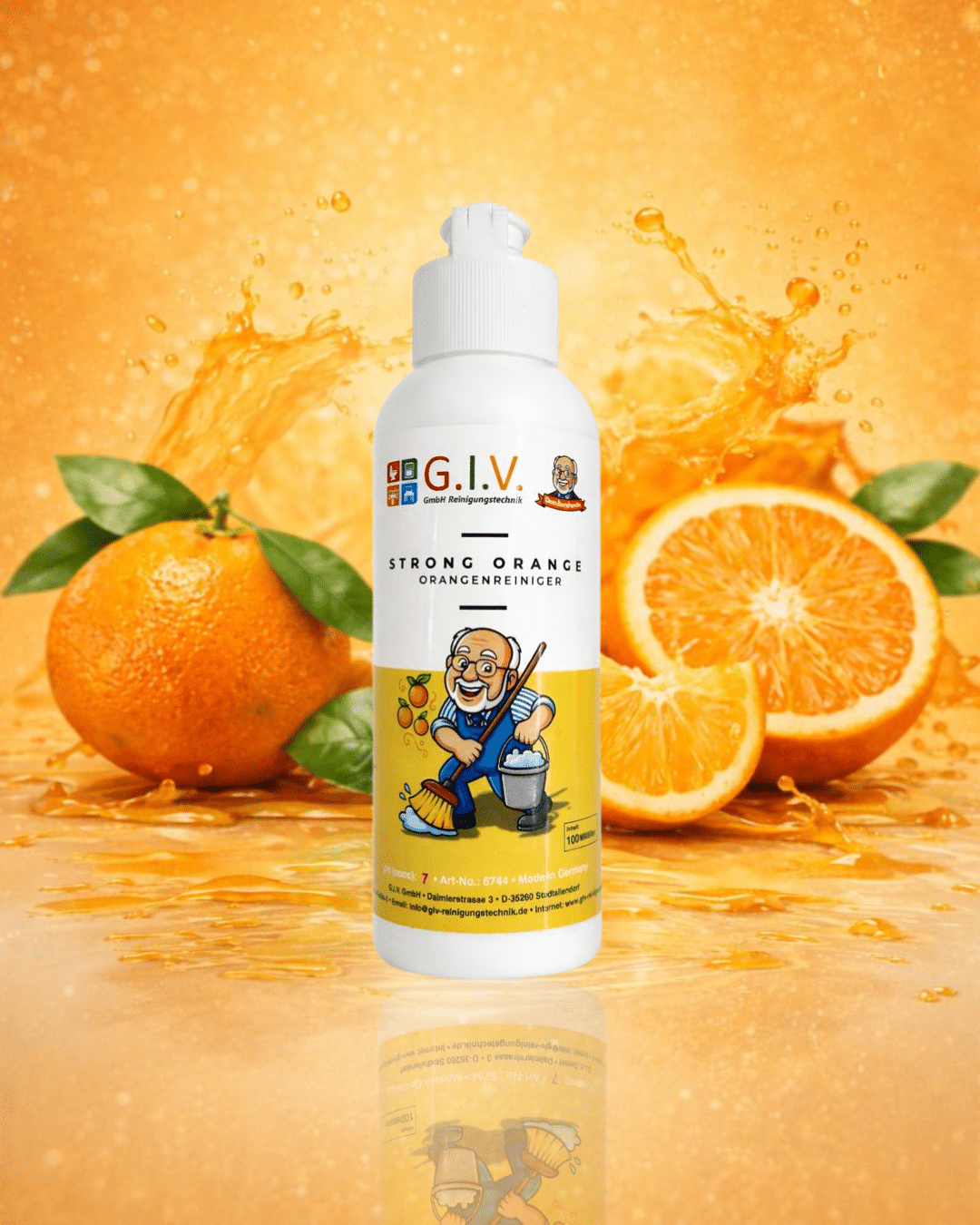 Ausgangspunkt dieser Produktlinie ist die bekannte Strong Orange Formel von G.i.V. Reinigungstechnik, die bereits in größeren Gebinden sehr erfolgreich im Einsatz ist und sich dort durch effektive Reinigungskraft und vielseitige Einsatzmöglichkeiten bewährt hat.