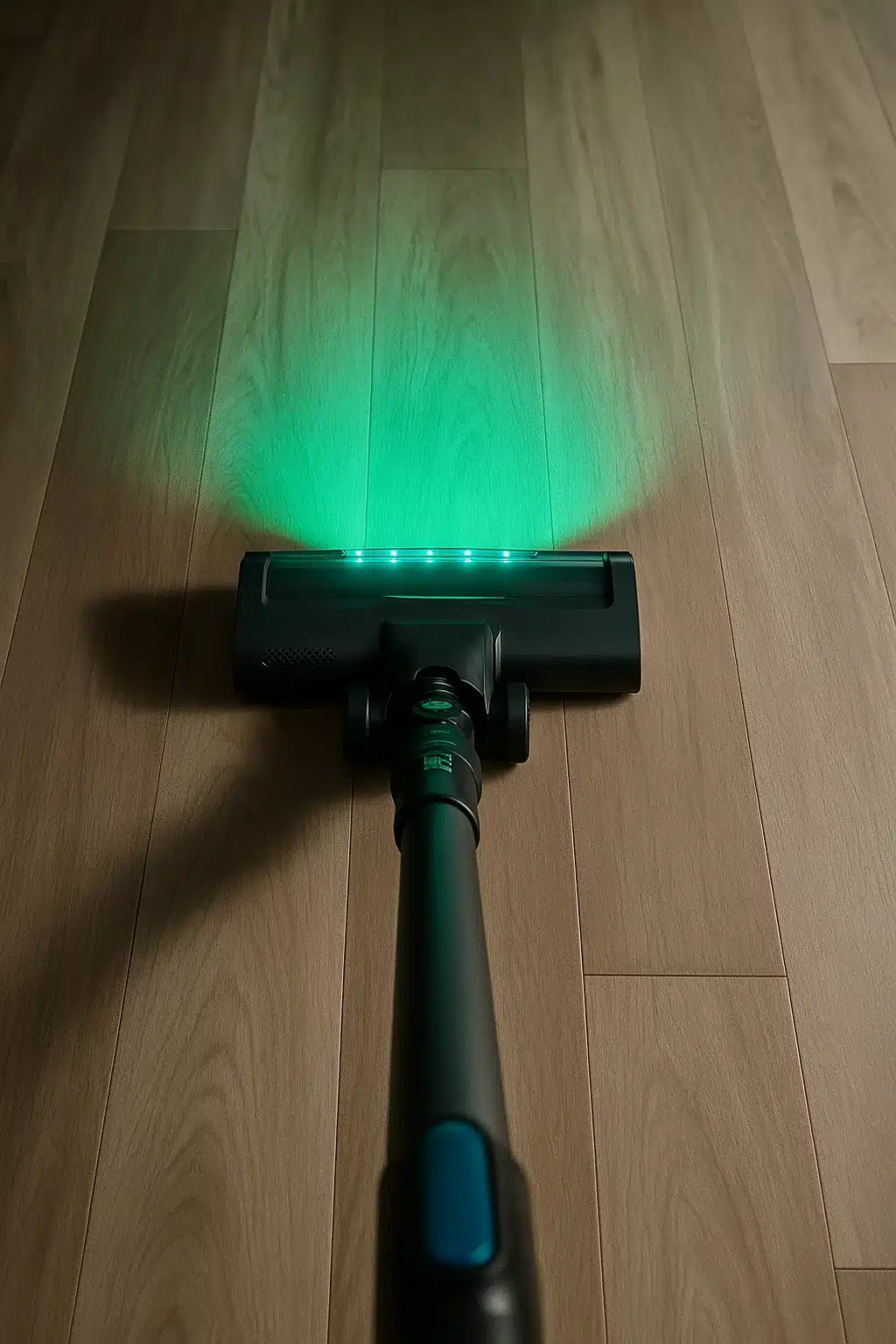 - LED-Frontbeleuchtung an der Elektrosaugbürste für bessere Sicht unter Möbeln
